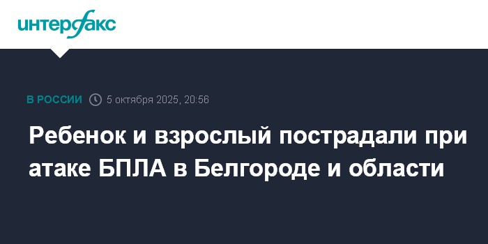 Москва. 5 октября. INTERFAX.RU - Два человека, в том числе ребёнок, пострадали при атаке беспилотников ВСУ в Белгородской области, сообщил губернатор региона Вячеслав Гладков.