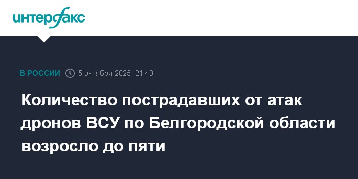 Количество пострадавших от атак дронов ВСУ по Белгородской области возросло до пяти