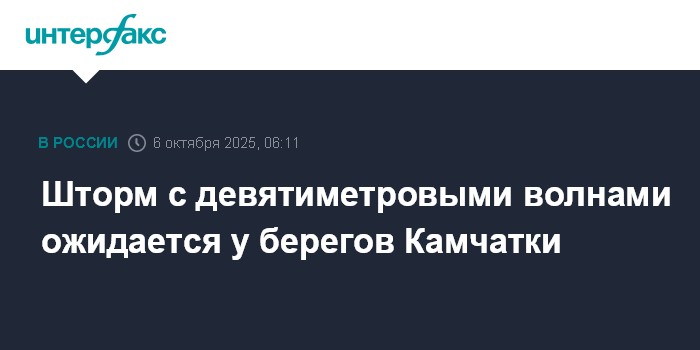 Москва. 6 октября. INTERFAX.RU - Штормовое предупреждение объявлено в акватории Берингова моря у берегов Камчатки, ожидаются волны высотой до девяти метров, сообщает в понедельник Главное управление МЧС России по Камчатскому краю.
