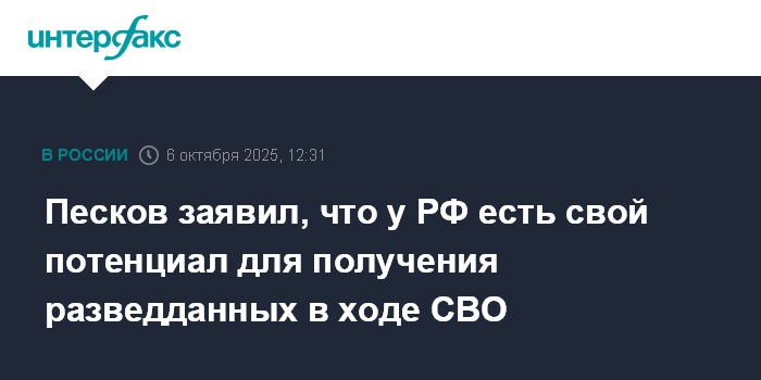 Песков заявил, что у РФ есть свой потенциал для получения разведданных в ходе СВО