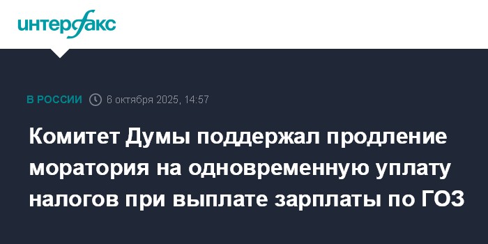 Комитет Думы поддержал продление моратория на одновременную уплату налогов при выплате зарплаты по ГОЗ