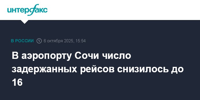 Москва. 6 октября. INTERFAX.RU - В международном аэропорту Сочи к 14:20 по московскому времени количество задержанных на вылет рейсов сократилось до 16, сообщает телеграм-канал предприятия.