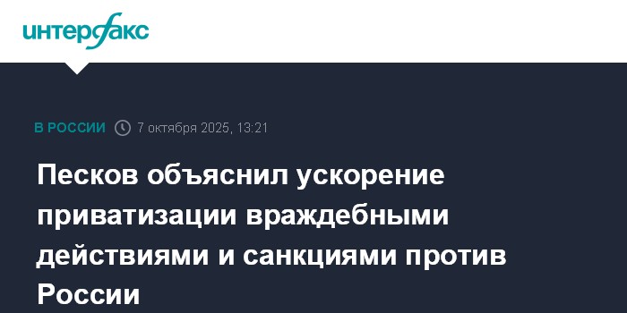 Песков объяснил ускорение приватизации враждебными действиями и санкциями против России