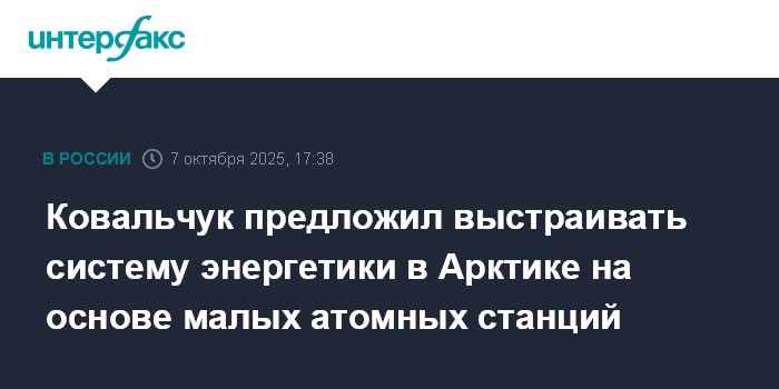 Москва. 7 октября. INTERFAX.RU - В Арктической зоне необходимо выстроить систему энергетики на основе небольших атомных станций мощностью до одного мегаватта, заявил президент Национального исследовательского центра "Курчатовский институт" Михаил Ковальчук на заседании научно-экспертного совета Морской коллегии РФ, председателем которого он является.