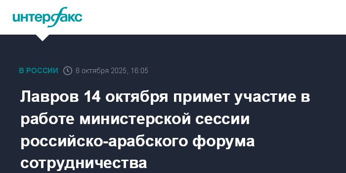 Лавров 14 октября примет участие в работе министерской сессии российско-арабского форума сотрудничества