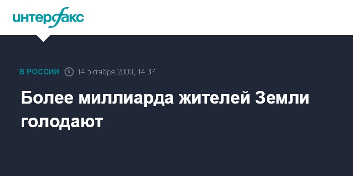 Рим. 14 октября. INTERFAX.RU - В мире насчитывается 1,02 млрд людей, страдающих от голода, говорится в докладе, опубликованном в среду в Риме Продовольственной и сельскохозяйственной организацией ООН (ФАО).