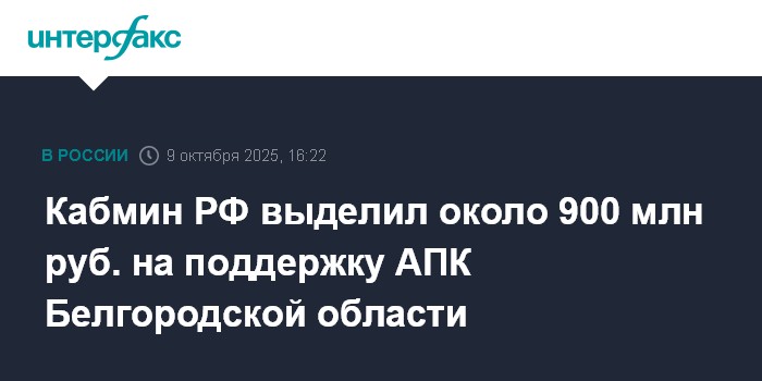 Кабмин РФ выделил около 900 млн руб. на поддержку АПК Белгородской области