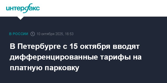 Москва. 10 октября. INTERFAX.RU - В Петербурге с 15 октября начнет действовать новая система тарифов на платную парковку, основанная на дифференцированном ценообразовании, сообщает городской комитет по транспорту.