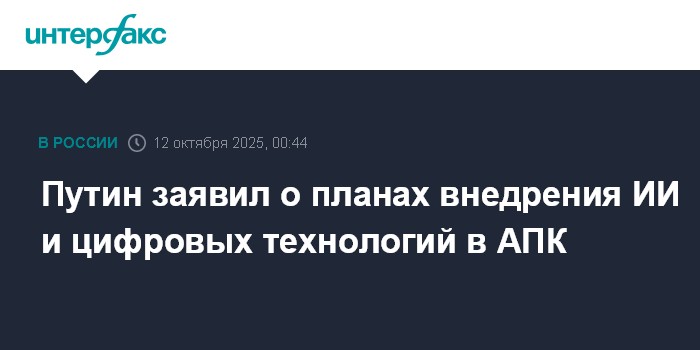 Путин заявил о планах внедрения ИИ и цифровых технологий в АПК
