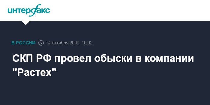 Москва. 14 октября. ИНТЕРФАКС - Следственный комитет при прокуратуре РФ провел обыски в компании "Растех", а также выемки документов, связанных с финансовой деятельностью этой фирмы.