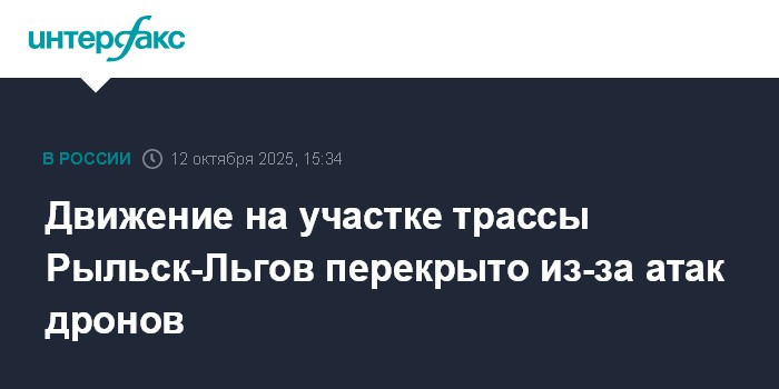 Движение на участке трассы Рыльск-Льгов перекрыто из-за атак дронов