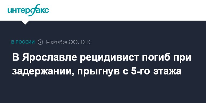 Ярославль. 14 октября. INTERFAX.RU - Подозреваемый в серии преступлений разбился насмерть, выбросившись из окна 5-го этажа жилого дома в Ярославле в ночь на среду при задержании.