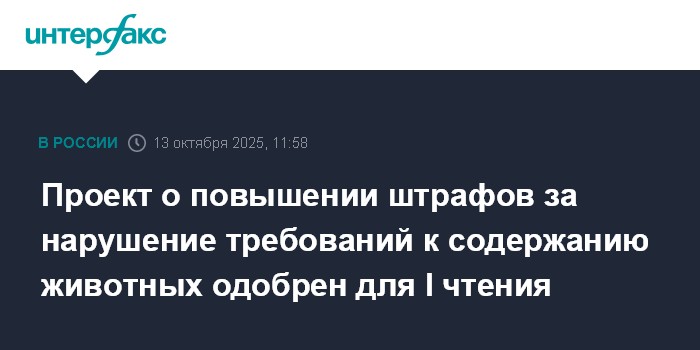 Проект о повышении штрафов за нарушение требований к содержанию животных одобрен для I чтения