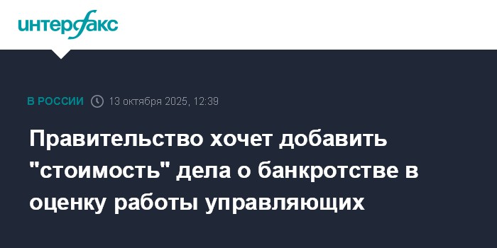 Правительство хочет добавить "стоимость" дела о банкротстве в оценку работы управляющих