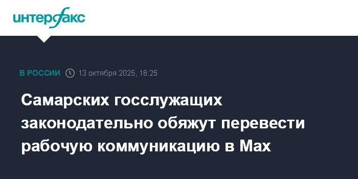 Москва. 13 октября. INTERFAX.RU - Госслужащих Самарской области законодательно обяжут перевести рабочую коммуникацию в национальный мессенджер Max, сообщил глава региона Вячеслав Федорищев на оперативном совещании в областном правительстве.
