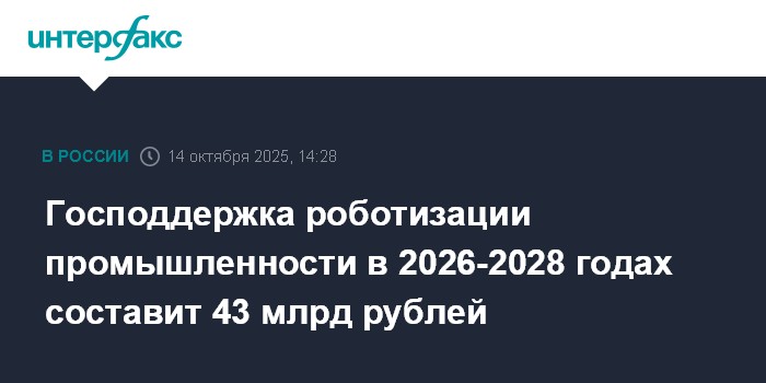 Господдержка роботизации промышленности в 2026-2028 годах составит 43 млрд рублей