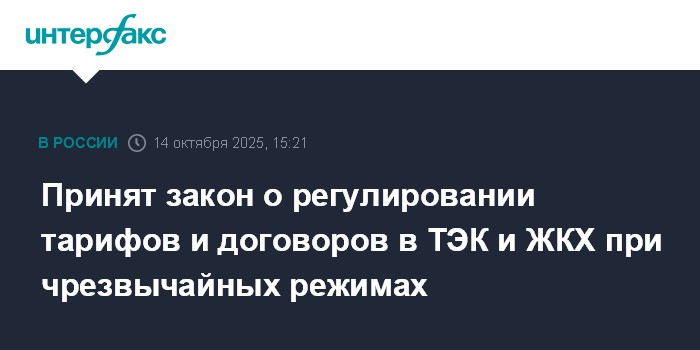 Принят закон о регулировании тарифов и договоров в ТЭК и ЖКХ при чрезвычайных режимах