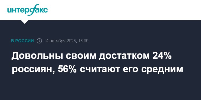 Довольны своим достатком 24% россиян, 56% считают его средним