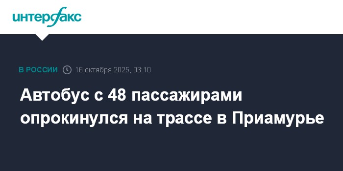 Москва. 16 октября. INTERFAX.RU - Автобус одного из предприятий, в котором находилось около полусотни пассажиров, в четверг утром опрокинулся на автодороге в Свободненском районе Амурской области, сообщает региональное УМВД.