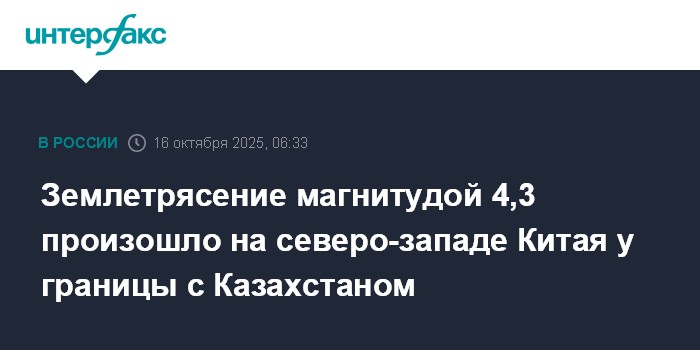 Землетрясение магнитудой 4,3 произошло на северо-западе Китая у границы с Казахстаном