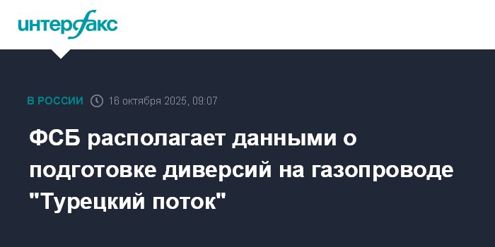 Москва. 16 октября. INTERFAX.RU - Директор ФСБ РФ Александр Бортников заявил, что Россия располагает информацией о подготовке британскими и украинскими спецслужбами диверсий на газопроводе "Турецкий поток".