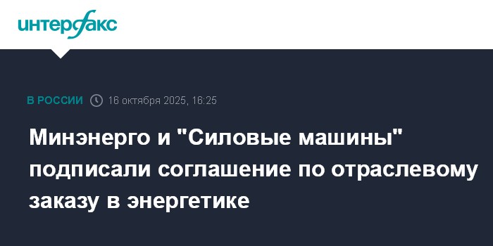 Москва. 16 октября. INTERFAX.RU - "Силовые машины" и Минэнерго России подписали соглашение "о координации совместной работы по формированию механизма отраслевого заказа на оборудование", сообщила компания.