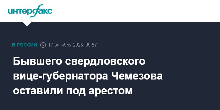 Бывшего свердловского вице-губернатора Чемезова оставили под арестом