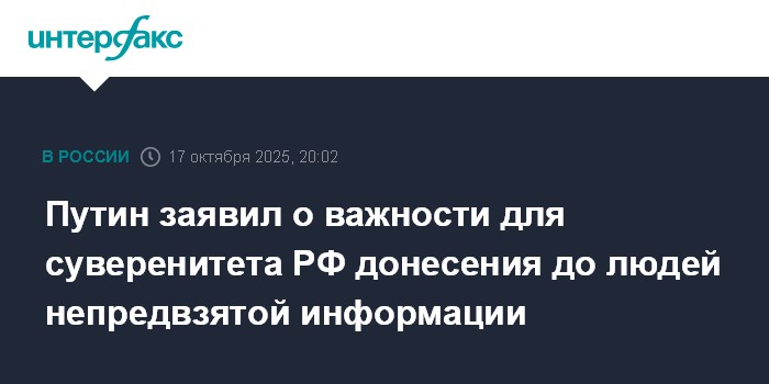Путин заявил о важности для суверенитета РФ донесения до людей непредвзятой информации