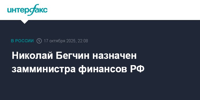 Москва. 17 октября. INTERFAX.RU - Премьер-министр России Михаил Мишустин назначил Николая Бегчина заместителем министра финансов Российской Федерации.