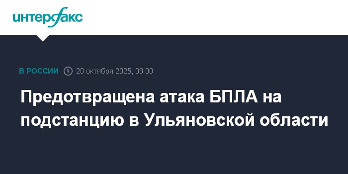 Москва. 20 октября. INTERFAX.RU - Силы ПВО предотвратили атаку украинских БПЛА на подстанцию в Вешкайме Ульяновской области, сообщил глава региона Алексей Русских.