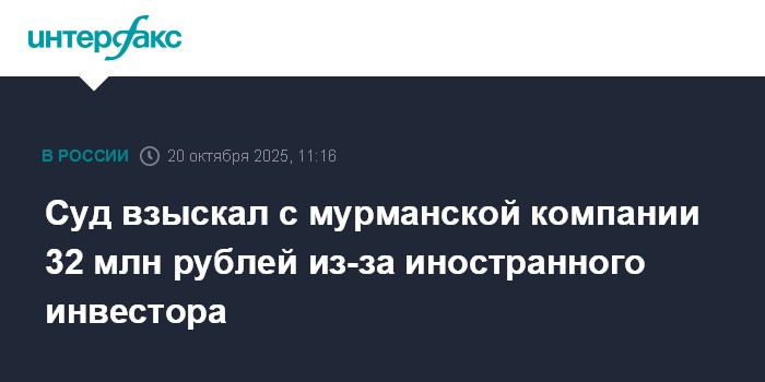 Суд взыскал с мурманской компании 32 млн рублей из-за иностранного инвестора