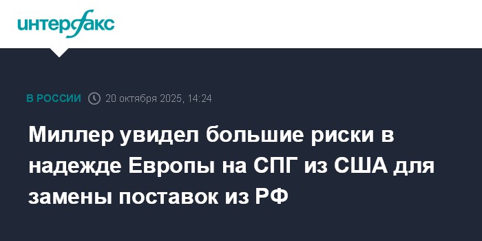 Москва. 20 октября. INTERFAX.RU - Действия Европы по замене источника газоснабжения с России на США несут к себе большие риски для поставок, заявил председатель правления "Газпрома" Алексей Миллер в интервью телеканалу "Россия 24".
