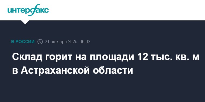 Склад горит на площади 12 тыс. кв. м в Астраханской области