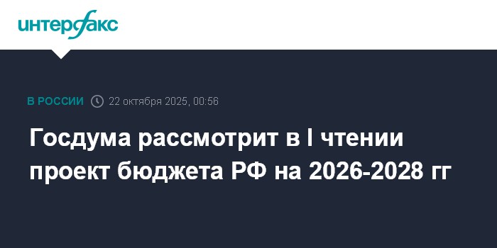 Москва. 22 октября. INTERFAX.RU - Госдума на заседании в среду планирует рассмотреть в первом чтении проект федерального бюджета на 2026 г. и плановый период 2027-2028 гг., следует из порядка работы парламента.