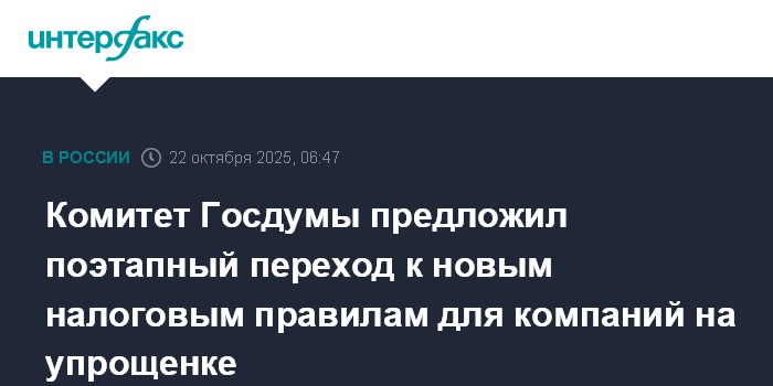 Москва. 22 октября. INTERFAX.RU - Комитет Госдумы по бюджету и налогам предлагает рассмотреть возможность поэтапного перехода к изменениям, запланированным с 2026 г., в части упрощенной и патентной систем налогообложения (УСН и ПСН), а также отмены льготы по НДС на российское программное обеспечение.
