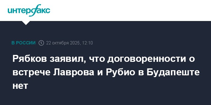 Москва. 22 октября. INTERFAX.RU - Договоренности о встрече министра иностранных дел России Сергея Лаврова и государственного секретаря США Марко Рубио в Будапеште нет, сообщил замглавы МИД РФ Сергей Рябков.