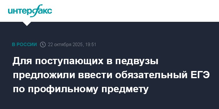 Москва. 22 октября. INTERFAX.RU - Минобрнауки предлагает с 2027-2028 учебного года ввести для абитуриентов педагогических вузов обязательный ЕГЭ по профильному предмету, который поступающий планирует в будущем преподавать в школе, сообщили "Интерфаксу" в пресс-службе министерства.