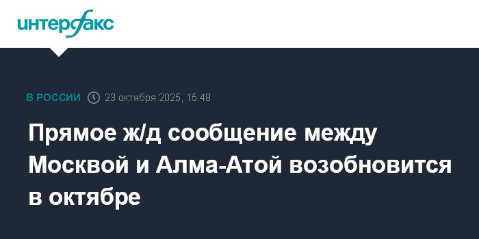 Москва. 23 октября. INTERFAX.RU - ОАО "РЖД" по согласованию с "Казахстан темир жолы" (Казахстанские железные дороги) возобновляет прямое железнодорожное сообщение между Москвой и Алма-Атой, приостановленное в 2017 г.