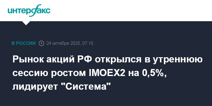 Рынок акций РФ открылся в утреннюю сессию ростом IMOEX2 на 0,5%, лидирует "Система"