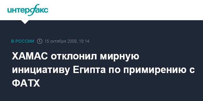 Иерусалим. 15 октября. INTERFAX.RU - Находящееся в Сирии руководство военного крыла палестинского движения ХАМАС отклонило план о примирении с другим палестинским движением ФАТХ, выработанный Египтом, выступающим посредником в переговорах, сообщает в четверг газета Jerusalem Post.