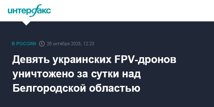 Девять украинских FPV-дронов уничтожено за сутки над Белгородской областью