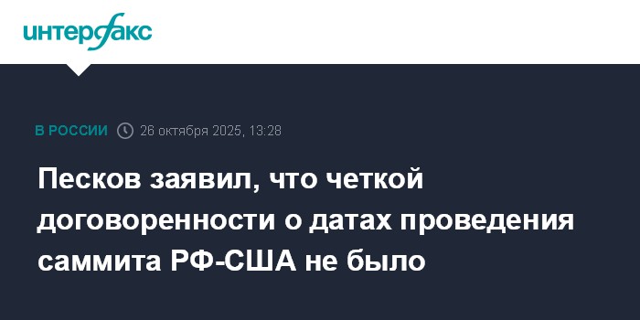 Песков заявил, что четкой договоренности о датах проведения саммита РФ-США не было