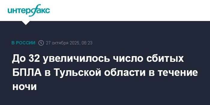 Москва. 27 октября. INTERFAX.RU - Губернатор Тульской области Дмитрий Миляев сообщил об уничтожении в регионе еще 24 беспилотников ВСУ в ночь на понедельник.