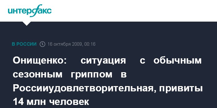 На сегодняшний день против обычного сезонного гриппа привиты 14 млн