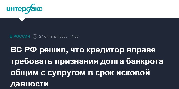 ВС РФ решил, что кредитор вправе требовать признания долга банкрота общим с супругом в срок исковой давности
