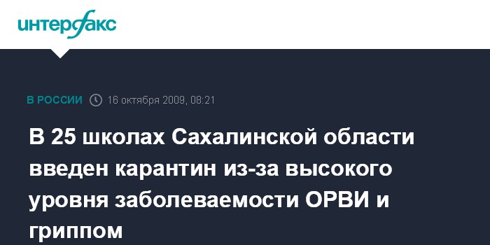 В 25 школах Сахалинской области введен карантин из-за высокого уровня заболеваемости ОРВИ и гриппом