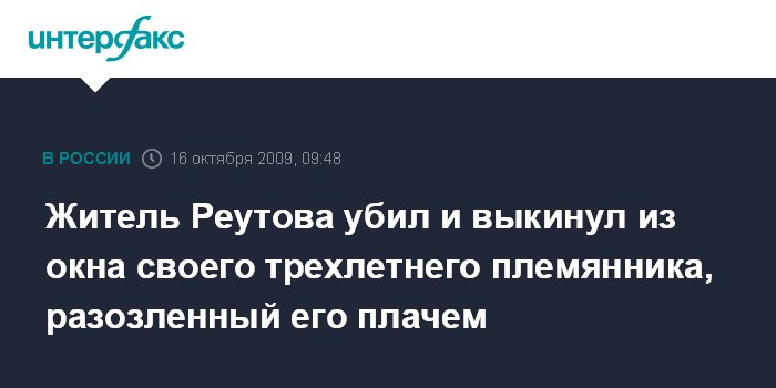 Житель Реутова убил и выкинул из окна своего трехлетнего племянника, разозленный его плачем