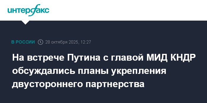 На встрече Путина с главой МИД КНДР обсуждались планы укрепления двустороннего партнерства
