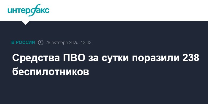 Москва. 29 октября. INTERFAX.RU - Российские военные сообщили, что за сутки нейтрализовали 240 различных воздушных целей.