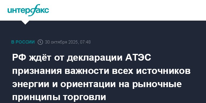 РФ ждёт от декларации АТЭС признания важности всех источников энергии и ориентации на рыночные принципы торговли